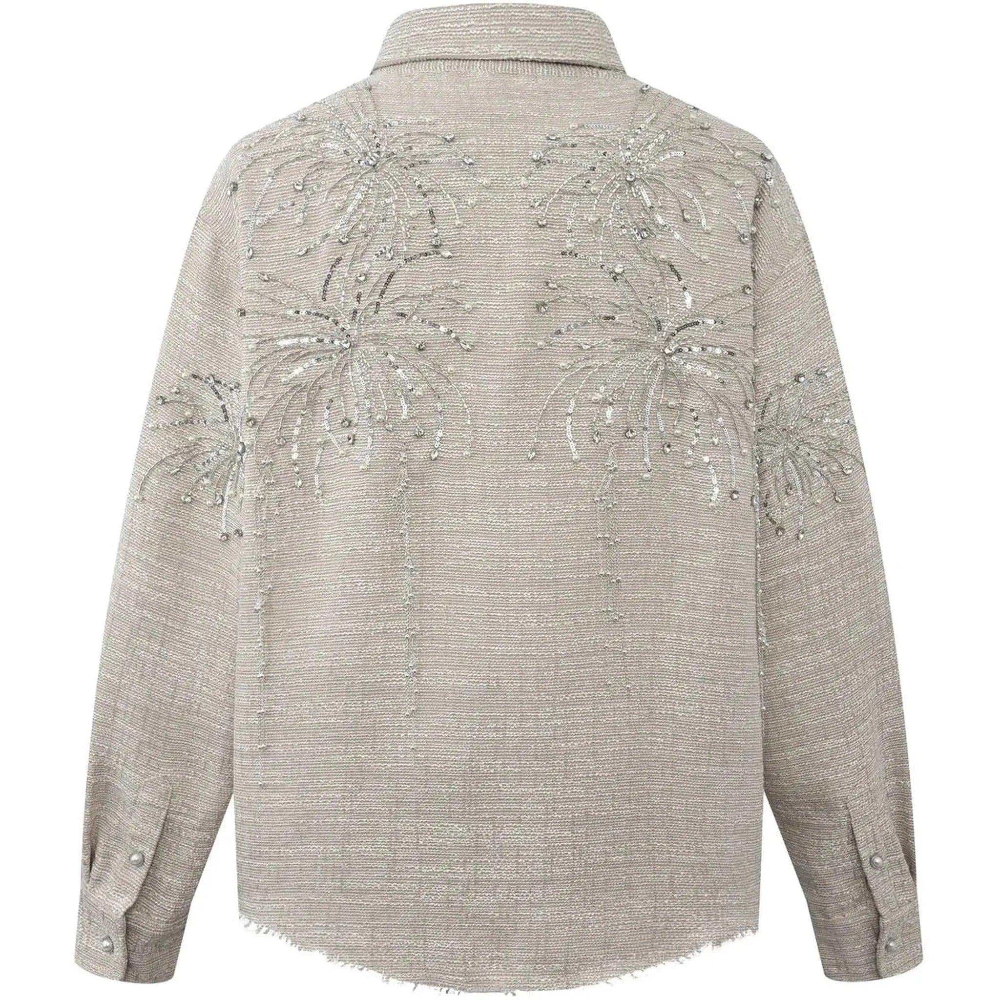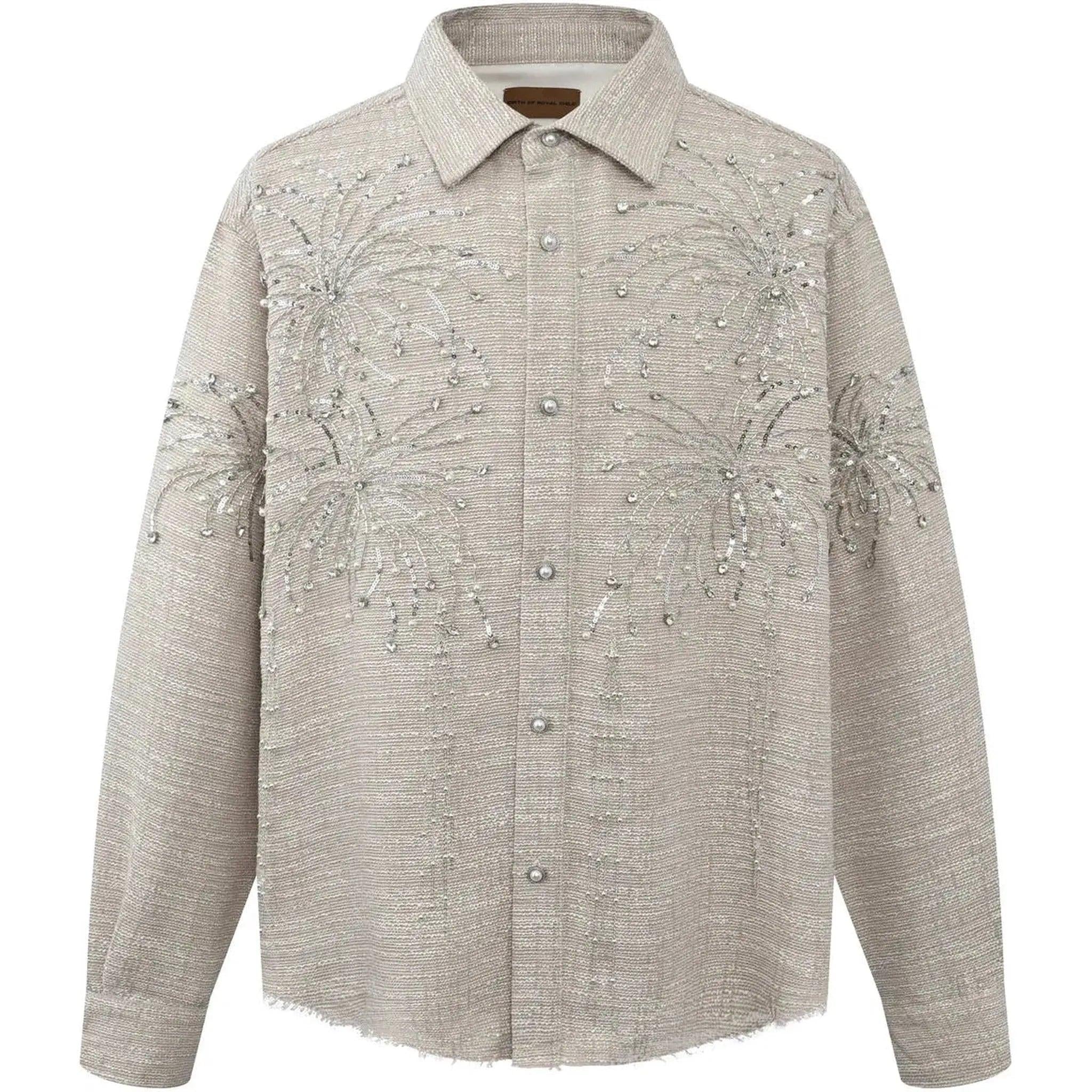 Birth of Royal Child Fireworks Beaded Diamond Shirt Beige